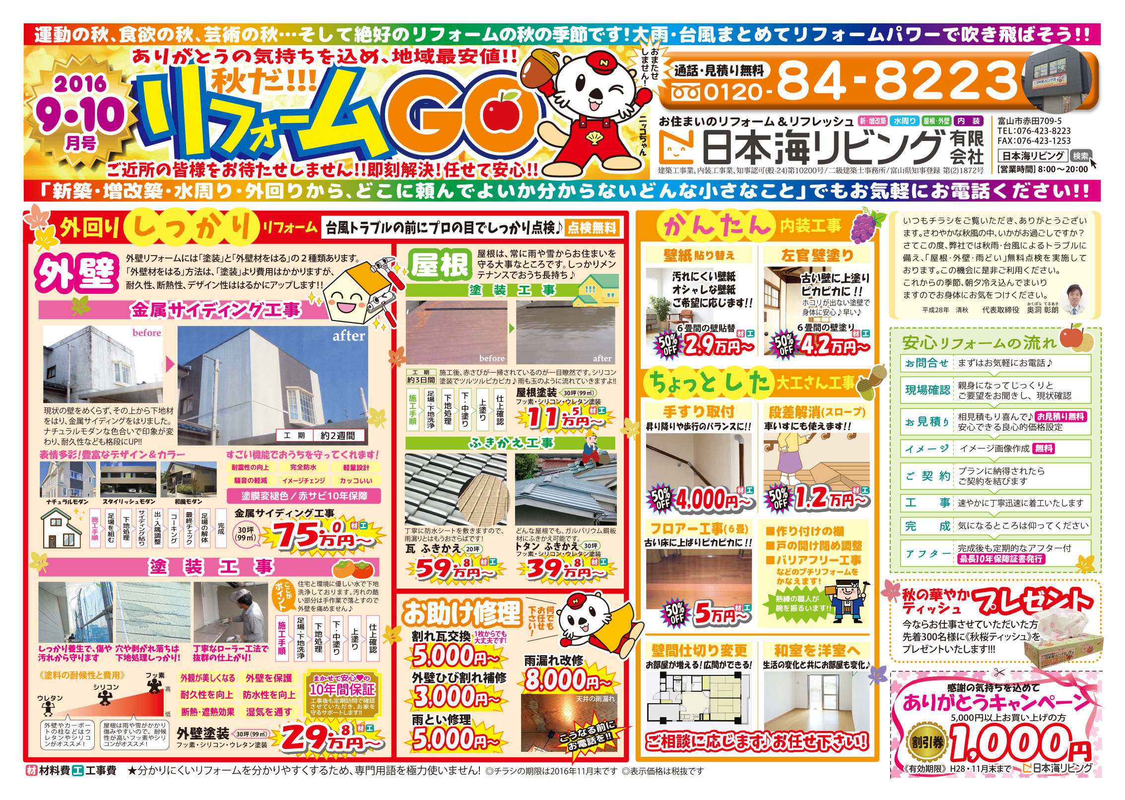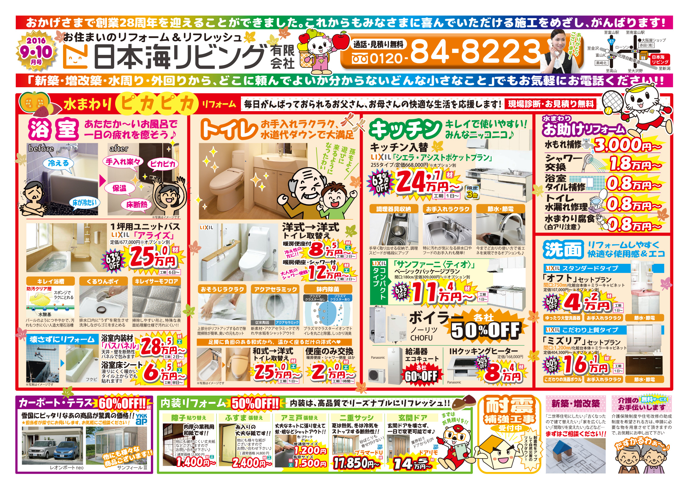 「運動の秋、食欲の秋、芸術の秋…そして絶好のリフォームの秋の季節です!!大雨・台風まとめてリフォームパワーで吹き飛ばそう!!」