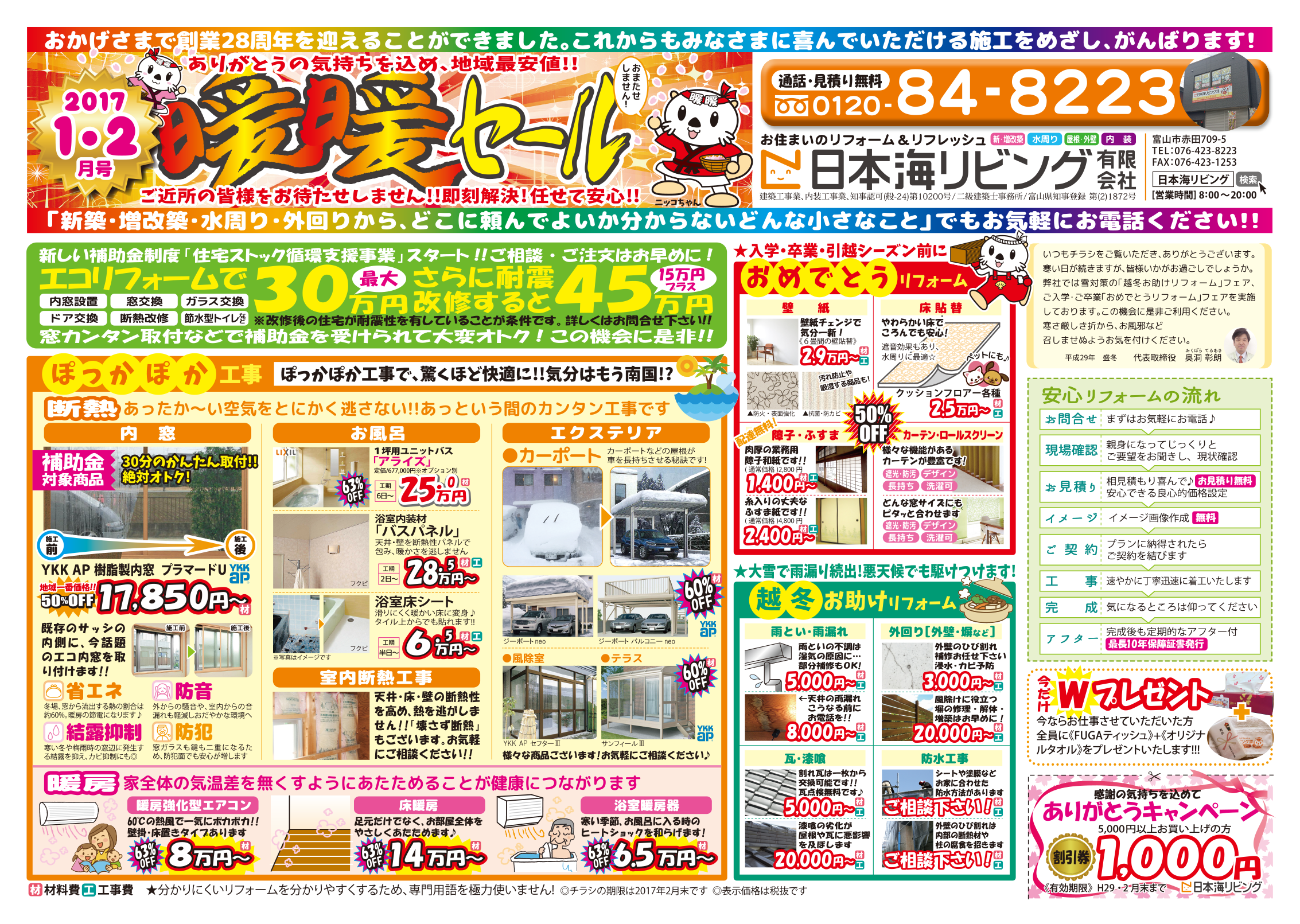 さて、本日は最新のチラシ(2017/1・2月号 暖暖セール)のご案内です!!