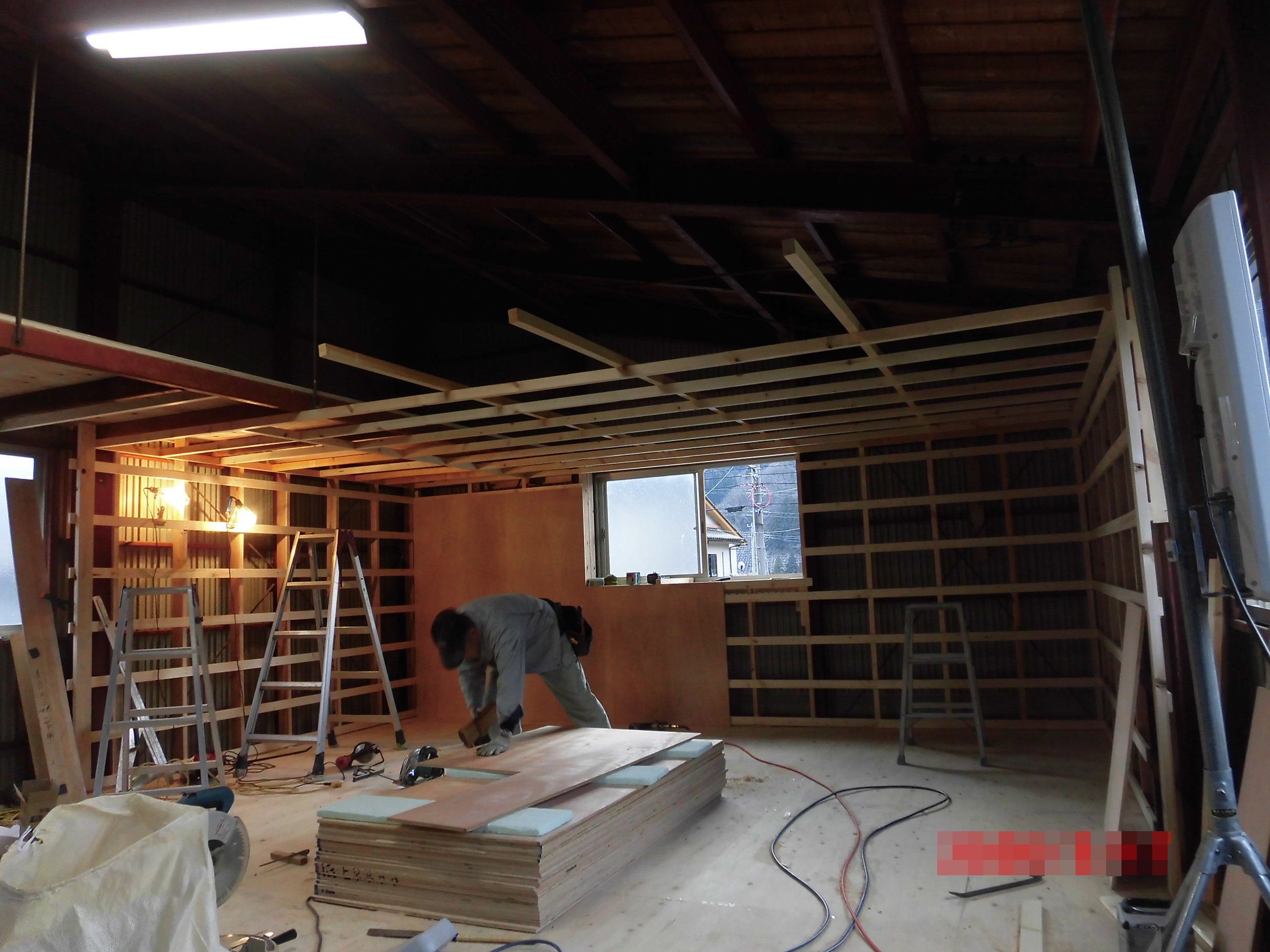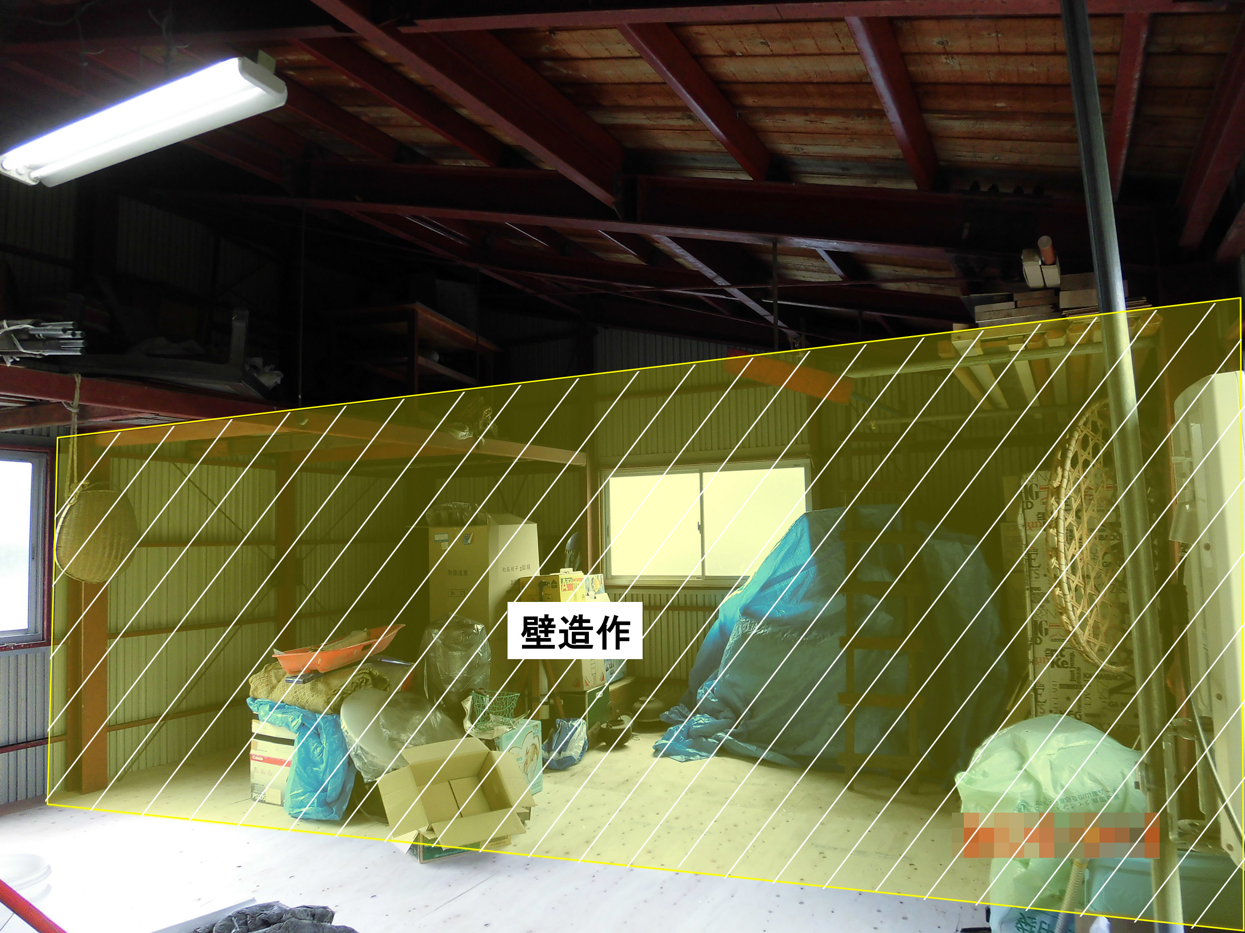 倉庫内に天井・壁を造作し、小部屋を造りました。