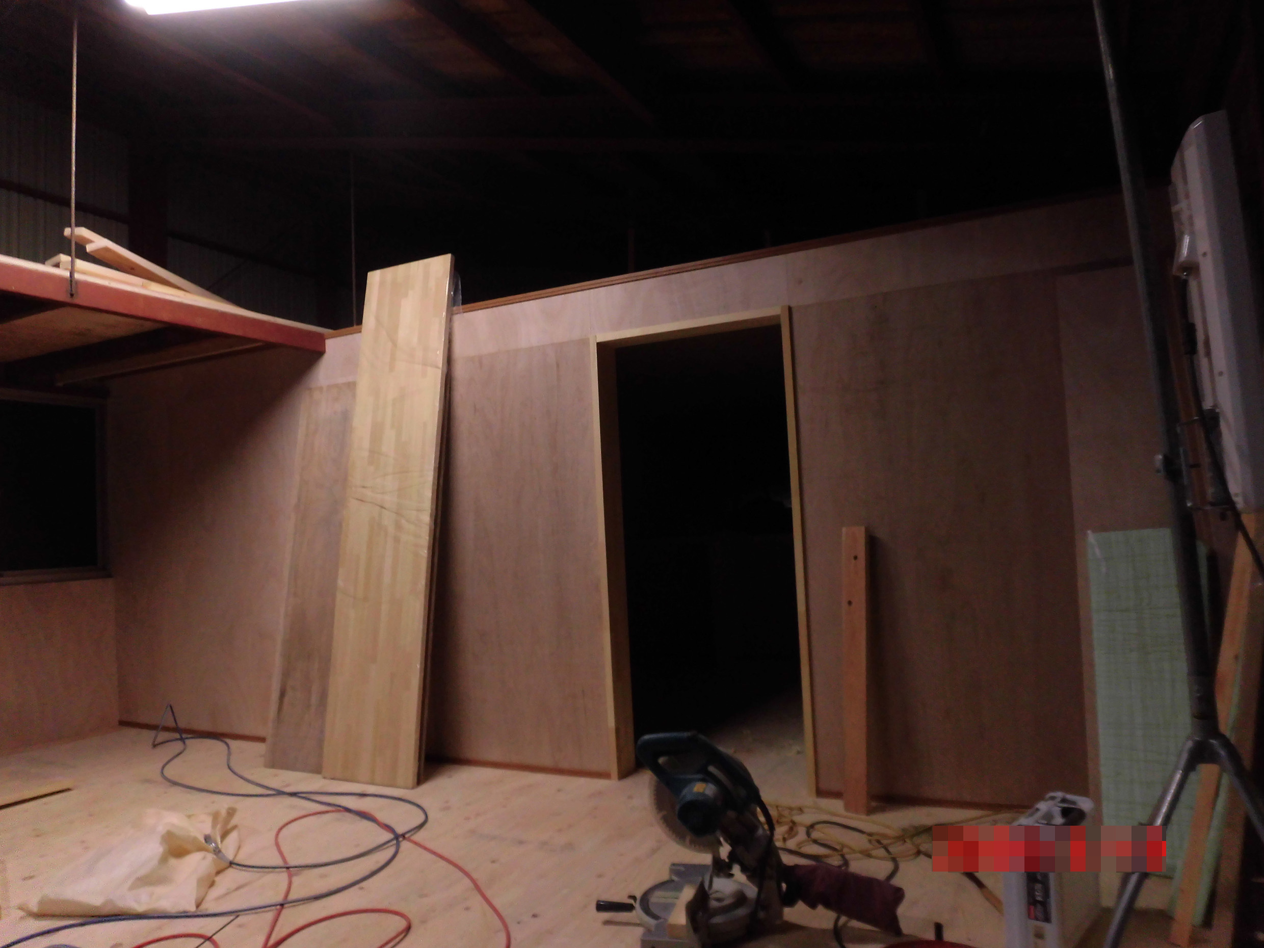 木の枠の上から、合板をはり、間仕切壁を造りました。