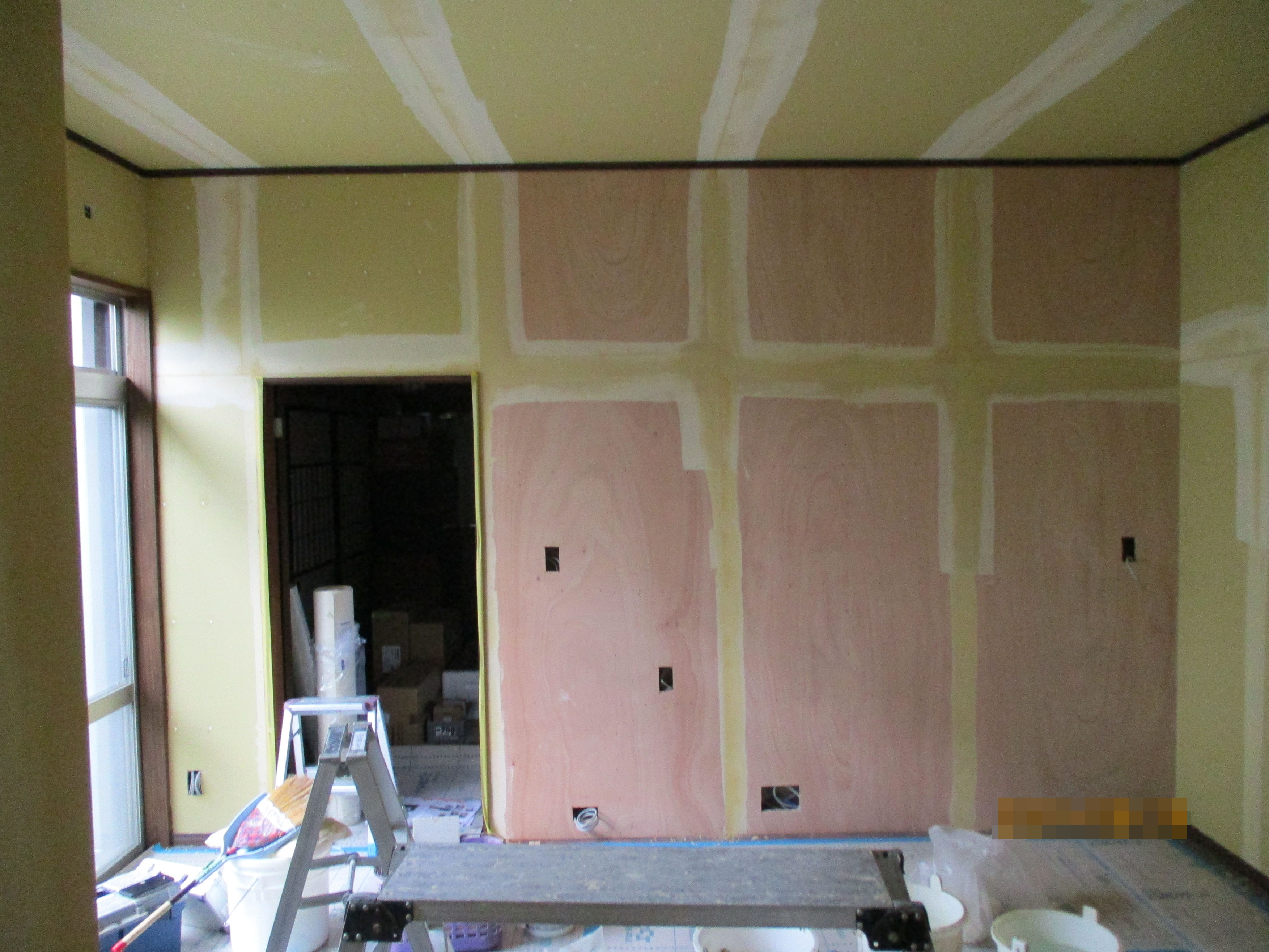 下地の上から合板をはり、壁を造作しました。その後、同様に