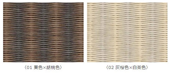 樹脂でコーティングして交互に編み込んで畳おもてにしています。