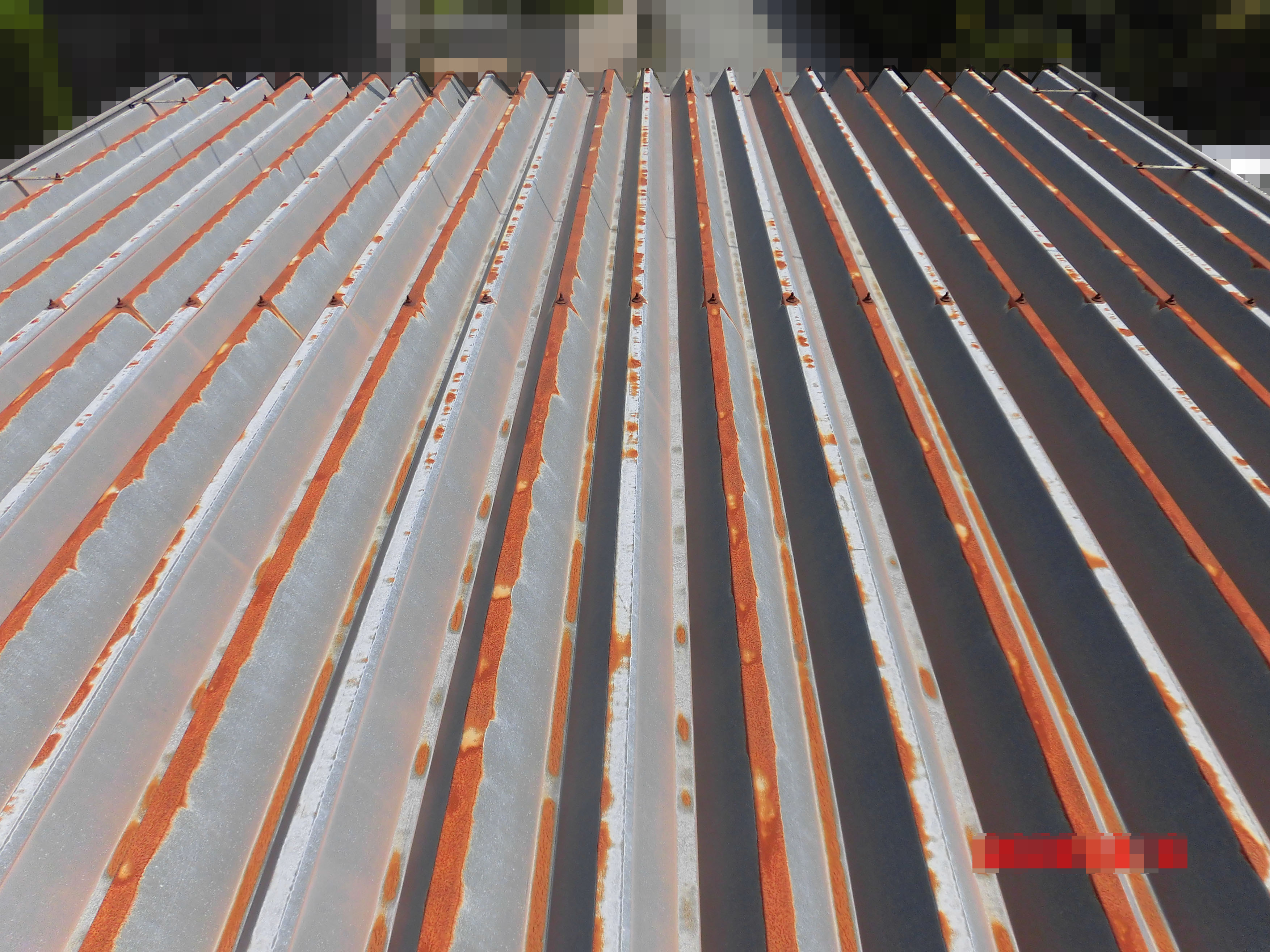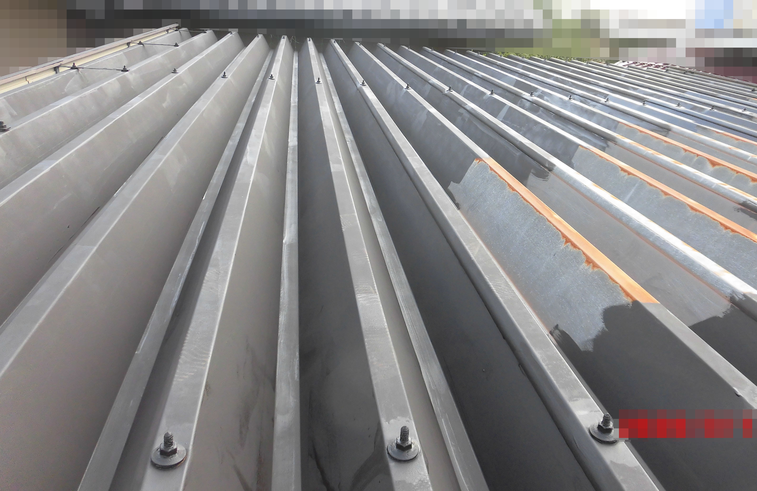 折板屋根、鉄骨部に広範囲にサビが出ていました。