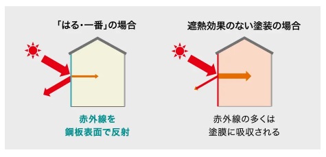 赤外線を鋼板表面で反射することにより、塗膜鋼板の表面温度の