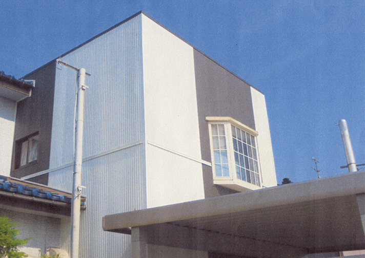 現状の壁をめくらず、その上から湿気のこもらない通気性のよい下地材をはり、デザイン性のある金属サイディングをはりました。
