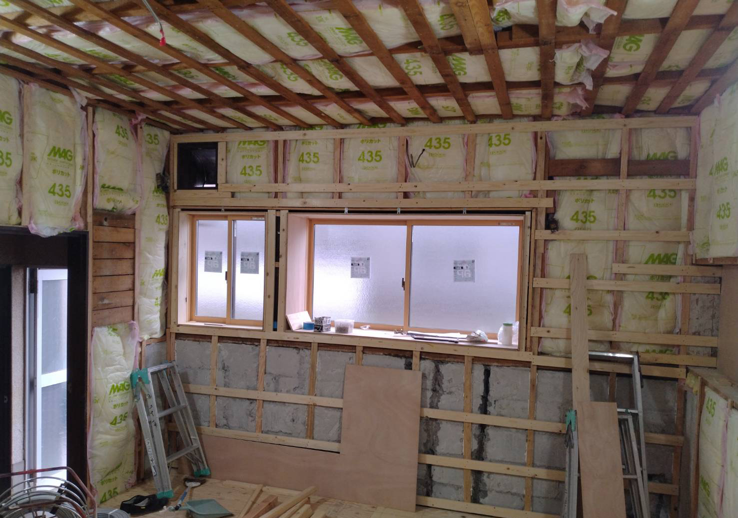 壁に断熱材を敷き詰めました。これで冬でも安心です。