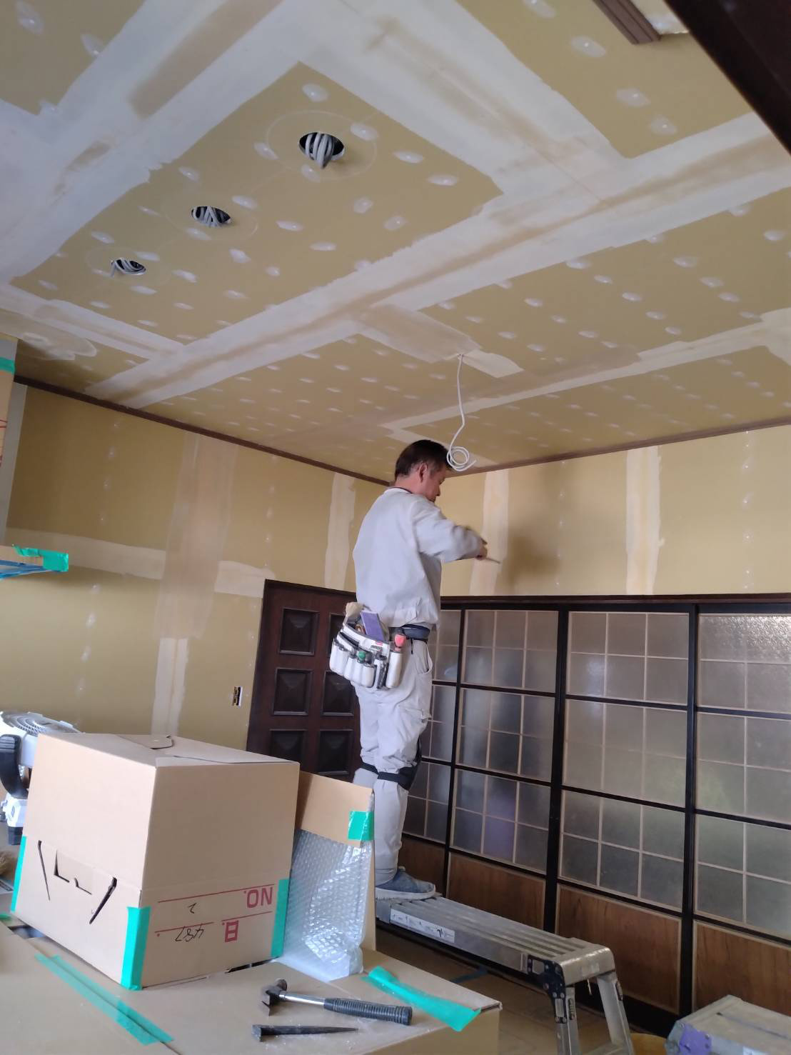 壁にボードを施工しました。