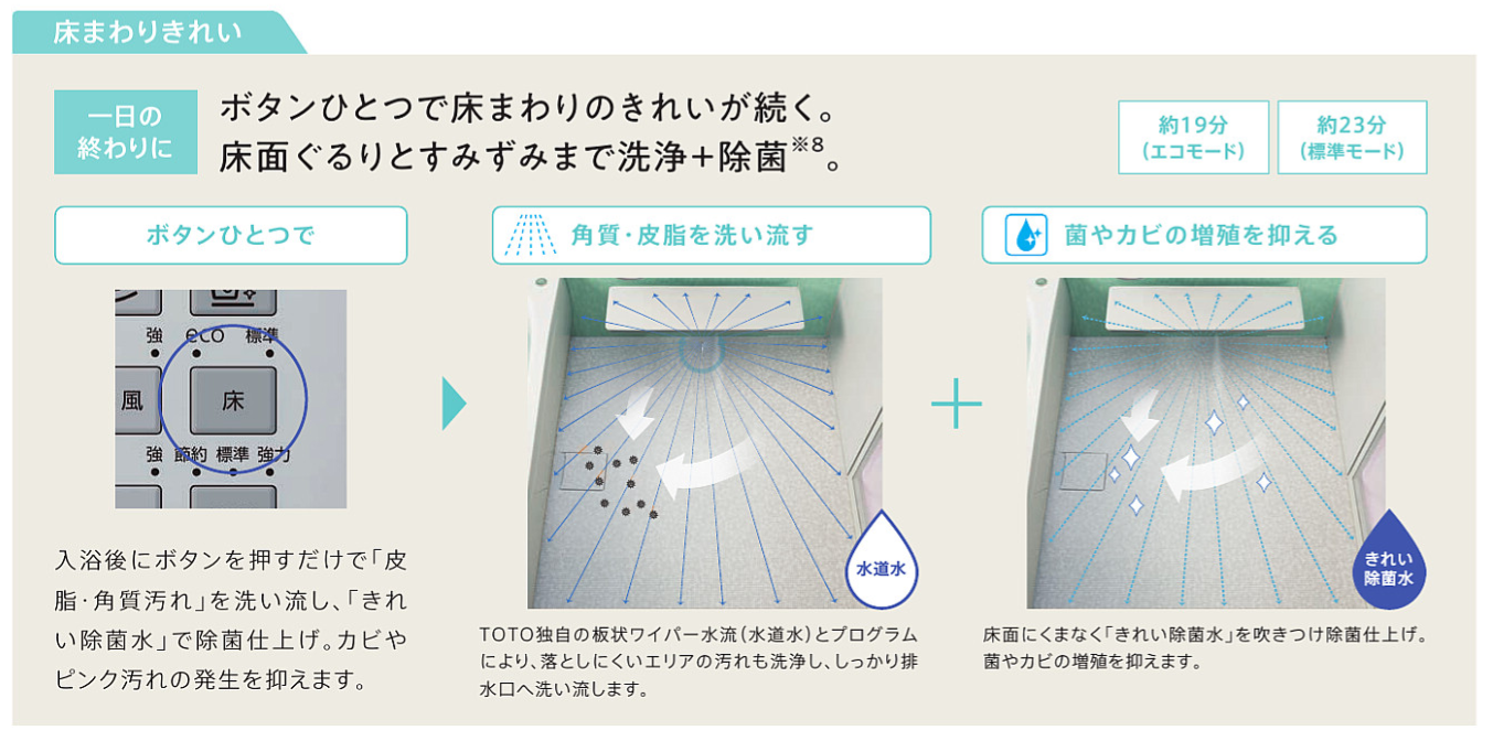 汚れが落ちやすく、乾きやすい ほっカラリ床