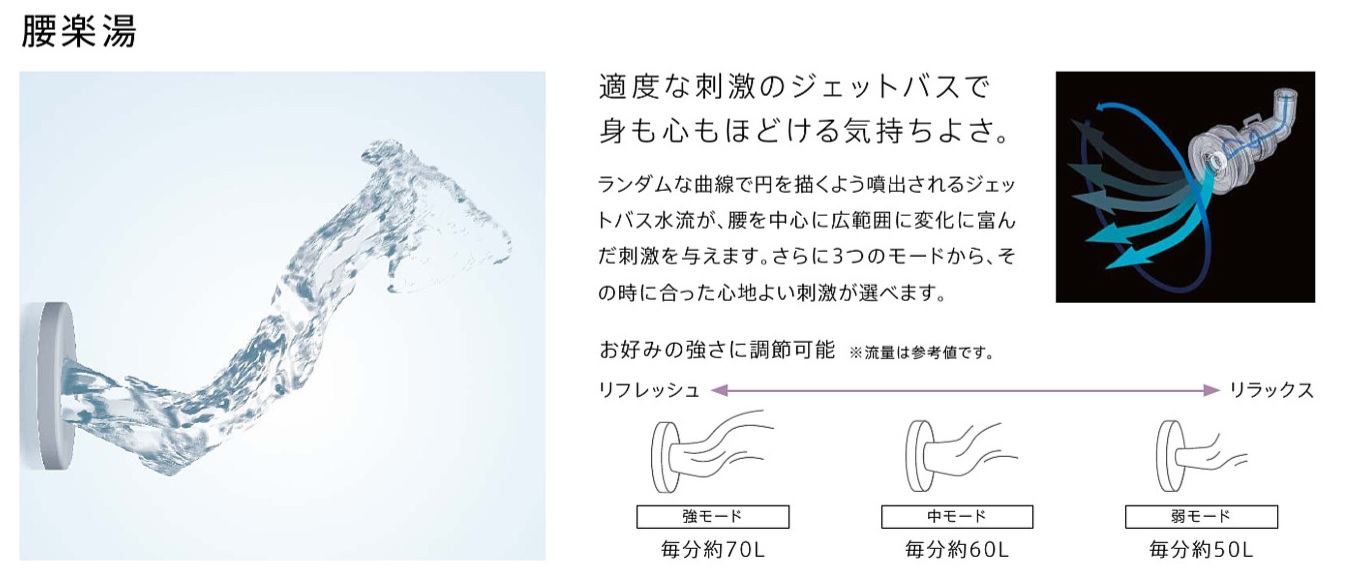 温められます。気分や好みにあわせて流量を変えられ、