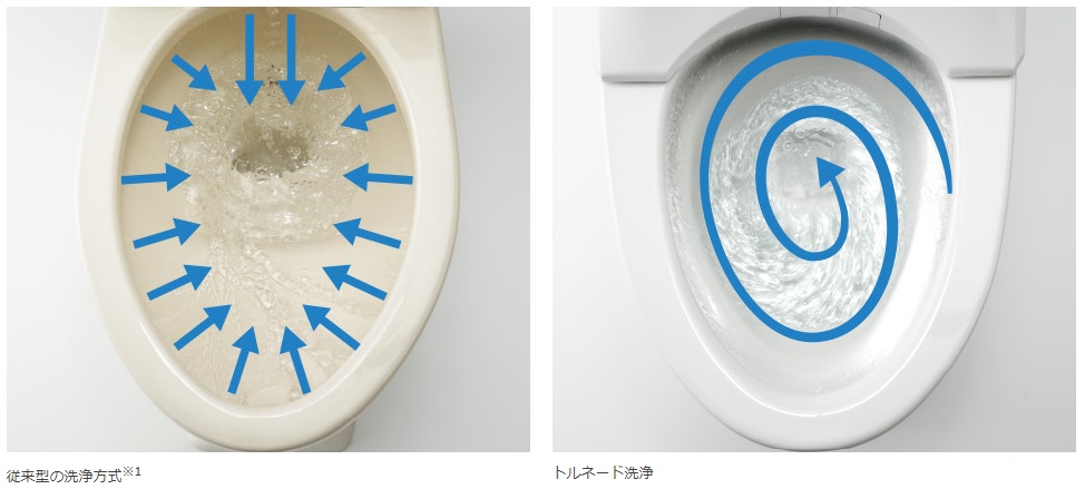 洗浄します。汚物が付着しやすい便器後方に勢いよく水が
