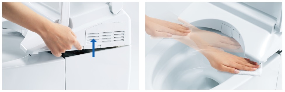 ワンプッシュでウォシュレット前方が持ち上がるので、汚れが