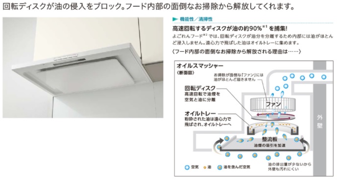 フード内部への油の侵入を抑える機構を採用しており、お手入れが