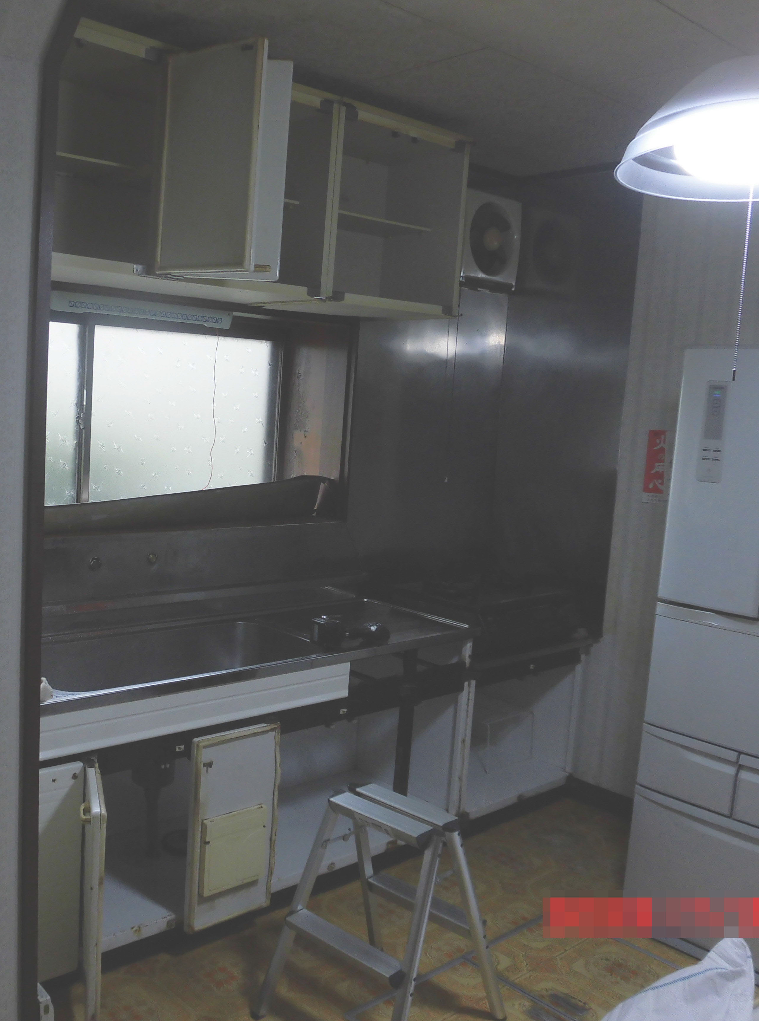 その後、既存のキッチン、換気扇を解体し撤去します。