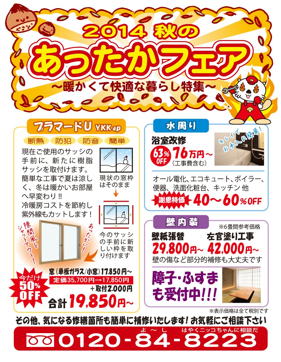 2014あったかフェア開催中!!! いよいよ寒い冬が到来します。 でもご安心ください! 日本海リビングでは、あなたの快適な暮らしやご家族の健康を護る 心強いリフォームメニューを激安特価で取り揃えております!!!!! 来年2015年を暖かくキレイな環境で迎えるためにも、ぜひお任せください♪ コメント